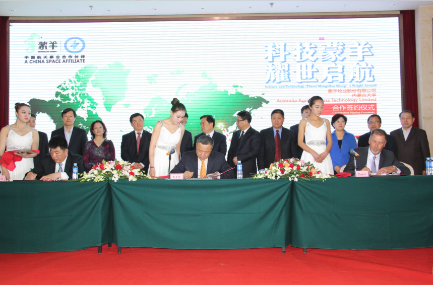 2014323上午10點(diǎn),蒙羊牧業(yè)股份有限公司、內(nèi)蒙古大學(xué)、澳大利亞AAT公司簽約啟動儀式在內(nèi)蒙古職工之家大酒店盛大舉行。本次合作的發(fā)起方及主要投資方是蒙羊牧業(yè)股份有限公司,發(fā)起方之一為內(nèi)蒙古大學(xué)和內(nèi)蒙古大學(xué)奧都資產(chǎn)經(jīng)營公司,合作方是澳大利亞AAT公司,三方共同出資成立了內(nèi)蒙古中澳生物高科技股份有限公司。